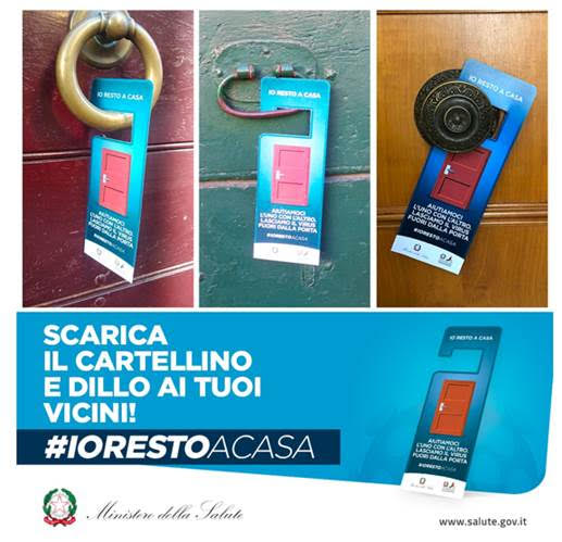 Dai personaggi tv alla porta di casa. Si allarga la campagna #iorestoacasa promossa dal Governo con il Ministero della Salute e la Protezione Civile. E stavolta il destinatario è la signora della porta accanto. Si chiama «#iorestoacasa: dillo ai tuoi vicini!» ed è infatti la nuova campagna di comunicazione, ideata e promossa dal Ministero della Salute, a cui tutti i cittadini possono dare il proprio contributo. Per partecipare basta scaricare dal sito www.salute.gov.it il cartellino: stamparlo, piegarlo, incollarlo, tagliarlo e poi appenderlo alla porta. Può diventare anche un’occasione di gioco con i bambini, e condividere le foto sui social contribuirà a veicolare il messaggio in modo ancora più forte. Restare a casa oggi è l’arma migliore che abbiamo per combattere concretamente la diffusione del nuovo coronavirus. Lasciandolo, appunto, fuori dalla porta…